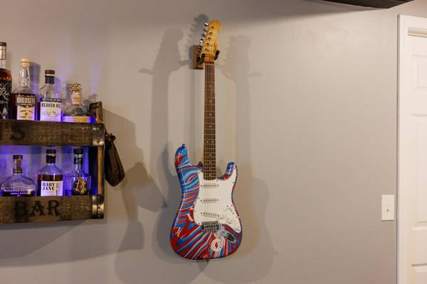 Rock out with a great Stratocaster in your favorite team's colors! Up for sale is a custom painted Fender Squier Stratocaster in Buffalo Bills colors! This guitar makes for a fantastic wall display, but also plays well and sounds great.