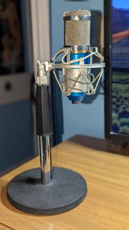 The microphone is compatible with various recording setups and can be used with XLR-equipped audio interfaces or mixers. It features a cardioid polar pattern, which helps isolate sound sources and reduce background noise. includes on stage mic stand
