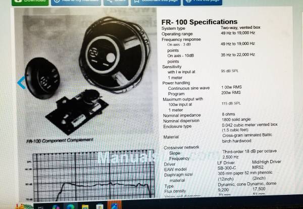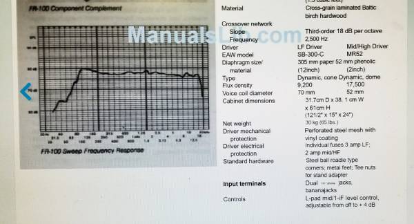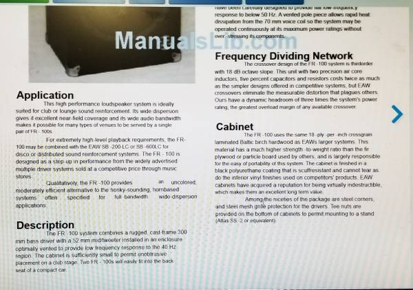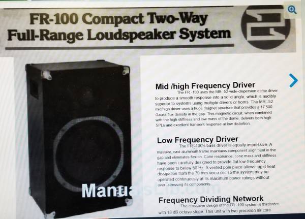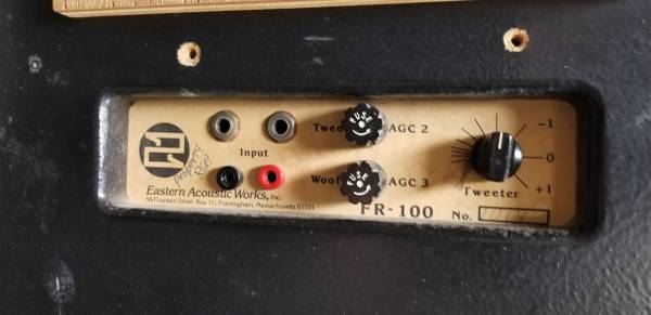 Very unique speakers, no horns, very sweet sounding for PA or keyboards. Price is for the pair. They both work 100 %. Specs are online if you search "EAW FR-100"