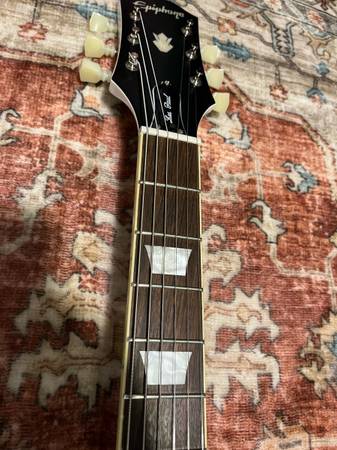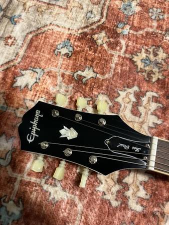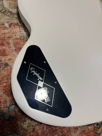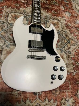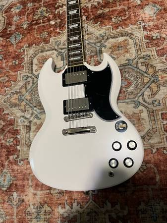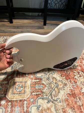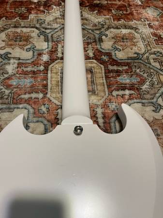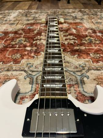 This is a 2022 model inspired by Gibson epiphone SG. It’s in great condition. It does have some minor pick scratches. A few minor dents shown in photos. It plays extremely well. Stays in tune. As the bridge and the headstock angle is a lot better for tuning stability than traditional standards.