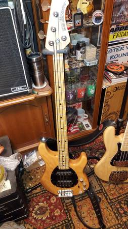 Introduced in 1993, the Sterling electric bass is renowned for its slightly smaller body and neck profile. The Sterling 4 string bass also boasts a big round bass sound. 9 volt active 3 band EQ preamp, 3 position pickup selector switch, and a ceramic humbucker with hum-canceling phantom coil come standard on the Sterling electric bass, allowing the bass tone to cut through any mix. Optional additional pickups in the neck position only add to the versatility of this innovative bass.