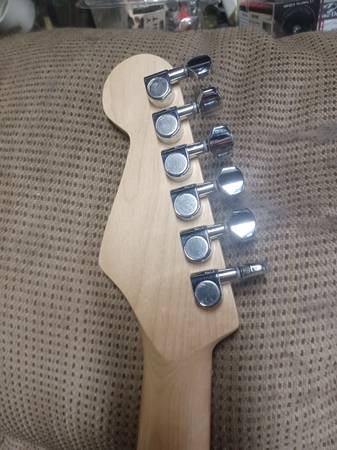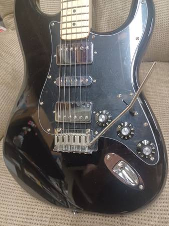 I have a Fender Squier tone monster with HSH & SSS tones. 5-way switch with push/pull volume control. Top Hat knobs. Tremolo with full block and push in bar. (No wobbly) Fleor pickups sound amazing.. 22 fret Squier neck with a Fender decal installed.