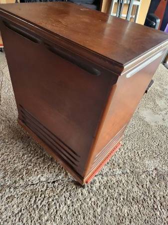 • Has a normal wood cabinet.