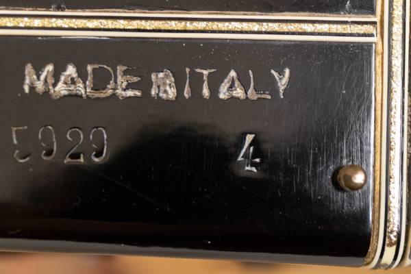 A large, piano type accordion with 41 keys and 120 bass buttons - made in Italy by Moreschi & Sons. It's in good condition, showing just a bit of wear at the bellows. One of the straps that hold it closed is missing. It's decorated with loads or rhinestones, and I have yet to find any that are missing.