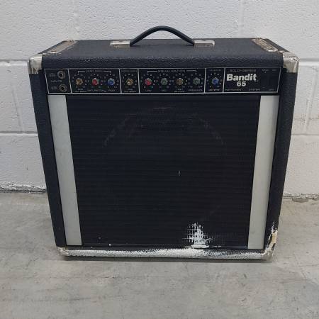 For sale is a Peavey Bandit 65 in need of repair. I bought it because it had a Black Scorpion speaker I wanted to restore a Peavey Stereo Chorus. When the speaker was installed I tested and cleaned the amp. All the knobs and features like Reverb are working, but something in the circuit is causing a harsh distortion and loss of volume, likely a transistor.