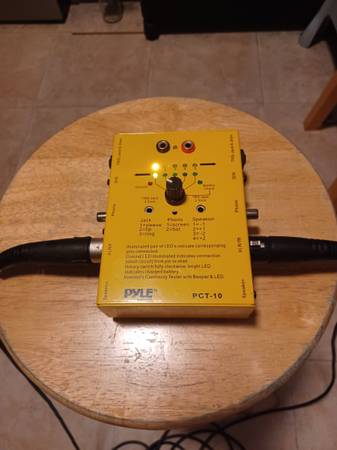 New audio cable tester. Tests XLR, TRS 1/4, speakon, phono, DIN. Brand New in box with 9V battery installed. Call or text Doug (585) six nine zero-6962 No trades. No scams