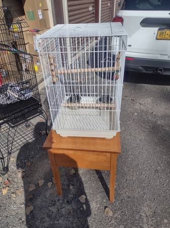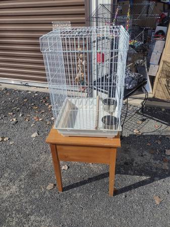 I have a bird cage with a wooden stand cage is like new brand new dishes included 30$