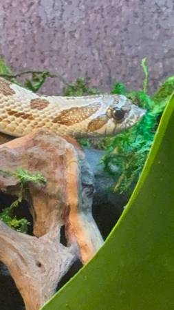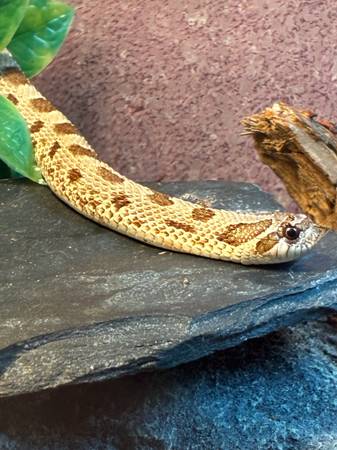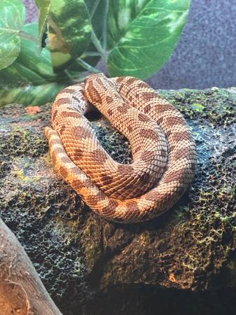 Male hognose. He's about 6 months old! He's quite sassy but has never bitten! He just likes to bluff. Rehoming fee applies! Also open to trades for other snakes like corns and ball pythons.