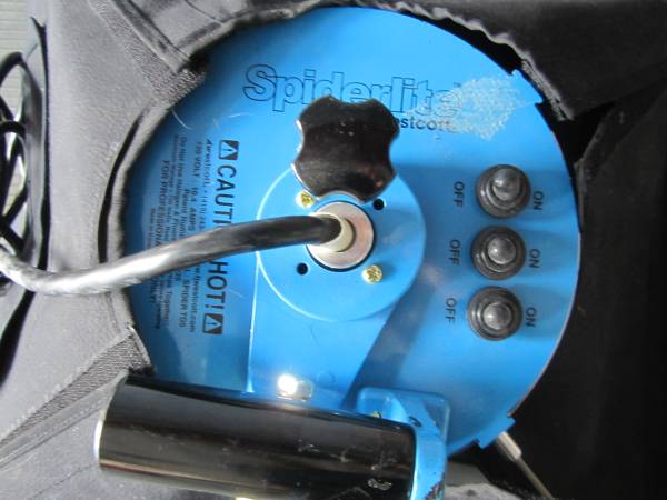 The Westcott Spiderlite TD5 light fixture accepts tungsten (2800° K) or fluorescent (5000° K) bulbs. Three separate controls allow running of multiple combinations of bulbs together with no color shift. It has all-metal construction with built-in points for direct attachment of a softbox -- no adapter ring is necessary.
