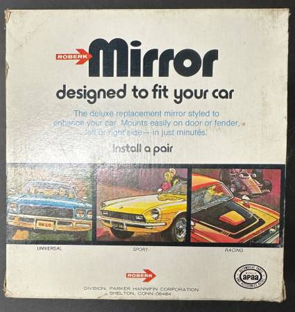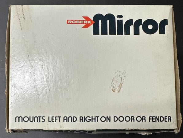 This is a vintage, unused, Roberk bullet style replacement mirror, model 350 . It is in new condition, paintable and designed for road, race & rally usage. Mounts easily to door or fender. Made in USA.