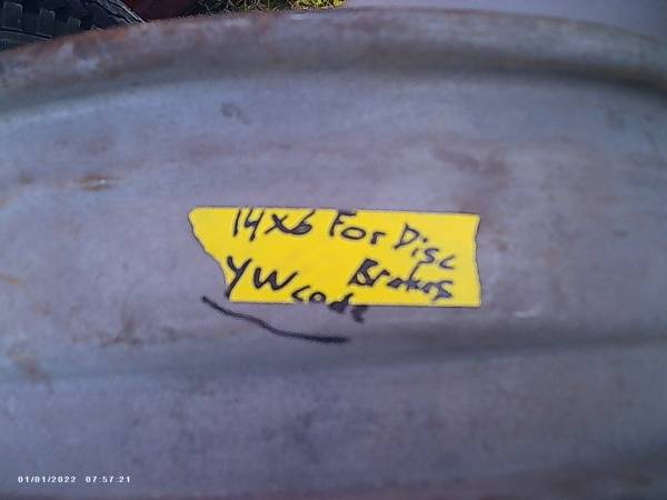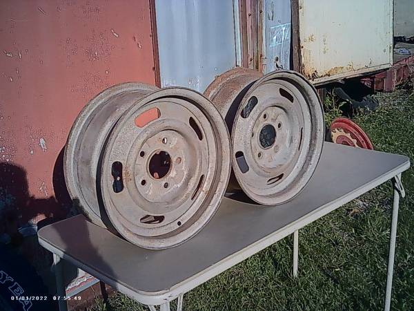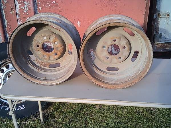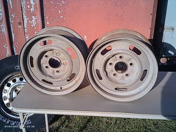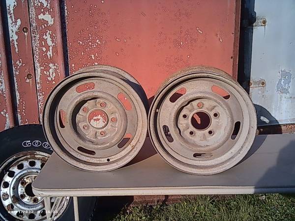 Good used pair of 14x6 chevy rally wheels, Rare YW code, Please ignore the date on the pics,,These were just taken! These rims were special for disc brakes, as most 14" would not clear the calipers,,These have been blasted and just need some paint, one of the rims does have a light curb mark but nothing serious and would be covered by the trim ring, First 100.00 obo takes the pair, Calls only please,No texts,,Threeonefive fivesevem three,two threethree eight anytime, just leave a voicemail and I will return the call asap, Newark is located inbetween rochester and syracuse about 10 minutes off the nys thruway, Thanks