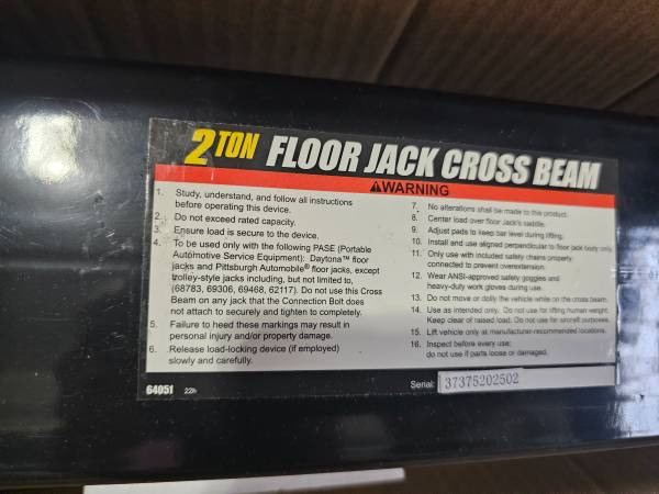 Daytona 2 Ton Cross Beam, 4 Ton Maximum Lift Capacity. NEW open box. Call Landline, No Text. (five, eight, five, three, nine, two, five, eight, six, five).