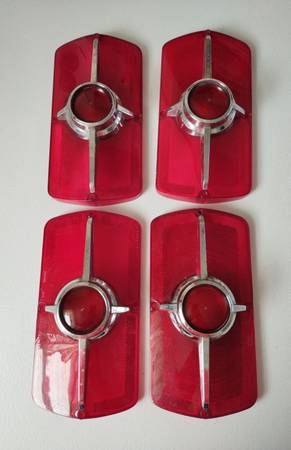 1965 Ford Fairlane tail light lenses. Part# SAE-TSDB-65FE. Excellent condition except for a few minor scuffs from storage & minor corrosion on chrome
