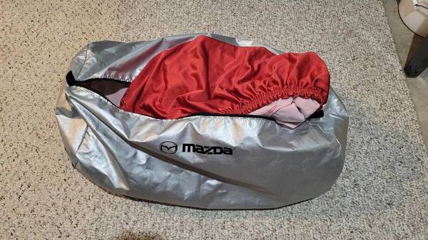 Red stretch breathable fabric made specifically for Mazda Miata model years 2016-2025. Clean and only used a few times. Includes storage duffle as shown. For indoor storage. Fits convertible. May not fit RF model.