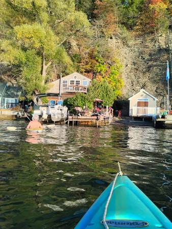 Hi we've had 20 wonderful years at this beautiful Camp Cottage on the lake. It's not for everyone but if you are an adventurous, outdoors lover and in good shape this is a gem in the rough! We are at the bottom of a mountain (actually Bare Hill)) so you cannot drive to it. We do have steep mountain driveway up above which is off East Lake Road and we do have shared parking there for a few cars but it's tricky to show people if they don't have a boat because East Lake Road is 650 feet above the lake where our Cottage is. It's easier to come by boat as we are directly on the water. The most beautiful part of the lake too with awesome sunsets! It's a rustic handyman special although you can live here "as is" there are repairs to be made such as the stairs and letting you know that we have a sawdust toilet right now because we disconnected the toilet because the dec wants all of us "High Banks" People that are directly on the water to pump the septic up to the Midway. We did get a Grant for that and We're waiting for the Engineer to give us the plan. He figures it will be approx $20k to do it and we did apply and got approved for a $10k Grant towards that. Because of the inconvenience of stairs to get down the Hill, We've been boating people in and out by pontoon boat to Vine Valley. It's only a 4 or 5 minute boat ride and has a cute General Store with a little Beach so it's a pleasant pick up and drop off area for our guests. If you are interested in this fully furnished camp/cottage we are including the working Pontoon Boat, Boat Hoist,Kayaks and all Beds, Furniture & Appliances, Pot Belly Wood Stove and Fireplace. We have a new Architectural Metal Roof with Lifetime Guarantee so you can enjoy it "as is" with our Hillbilly Toilet lol or put in some money and time to make it a nice Family Cottage. Oh yeah there is space at top of our property to build another little cabin too if you want to be in woods just off the East lake Road. Looking for a Cash Buyer, no Mortgages, we own free and clear so you could move in and enjoy now . We usually turn water off end of October but if you heat tape the water lines can stay open all winter.