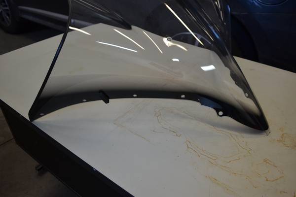 Very minor damage to each, please see pictures. Plastic has pieces missing, but no cracks. The windshield mount/bracket got bent up a bit but is reasonably straight compared to the new part. Windshield and fairing include any rubber add on pieces. No major scratches in the plastic parts.