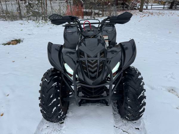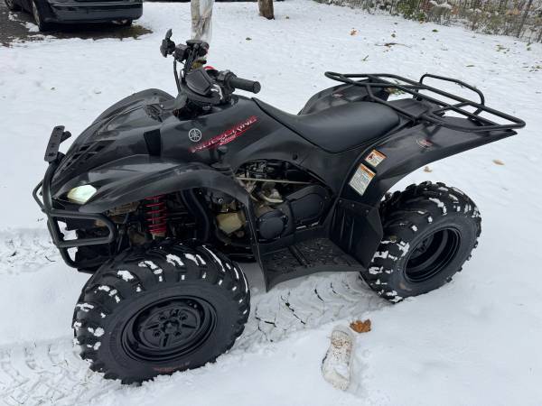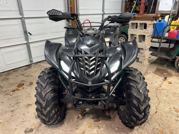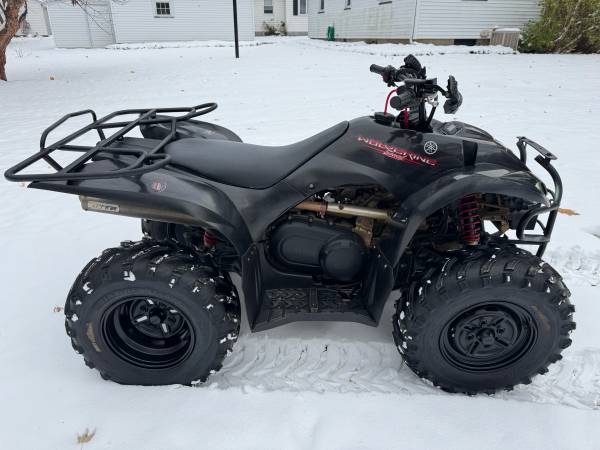 Yamaha wolverine special edition. Blacked out graphics and rims and along with LED headlights make this a very mean looking machine. If you’ve never had a Wolverine you will love it once you try it, it has the sporty looks and handling like a raptor, yet the off road capability of a utility four wheeler with the selectable 4 wheel drive but without the bulkiness of utility racks and extras the come with. It really is a great machine to ride for miles and not worry about getting stuck where you actually enjoy the handling and ride quality. Like new tires on it and transferable registration in hand. Around 2500 miles on it but I use it here and there so will go up slowly. Garage kept very clean machine.
