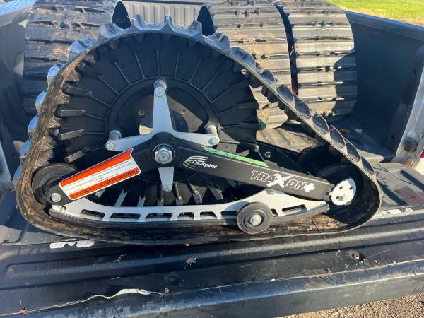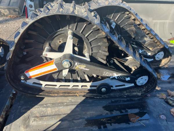 Camoplast UTV tracks. Off of 2019 polaris ranger 4x156 lug / can change out the hub with 4 bolts and easily swap to a different unit. Tracks have extremely low hours and in person they look near new. When not in use stored inside. Have only been used in snow, but can use in mud / dirt. Tread is phenomenal on tracks and all boagies / bearings are tight as new.