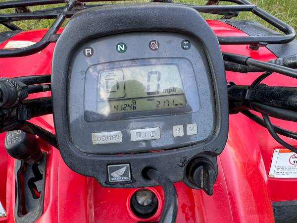 Nice Honda rancher 420, I have two sets of rims and tires to go along with it and the tires currently on it now are all like new. This is the best optioned one you can get with the selectable 2 or 4 wheel drive and also the selectable completely automatic transmission or you change the dial and you can shift it with the arrow up and down thumb shift. The entire shifting system with clutches were just rebuilt so it is very smooth like it just came from the factory as far as shifting and running goes. You won’t find another rancher of this age that shifts as well as this of you know optional thumb shift then you know what i mean.