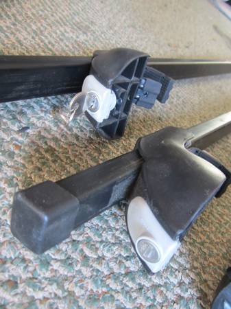 Fold down when not in use. Will hold 2 kayaks paddle boards, etc. each. Has keys to lock down.