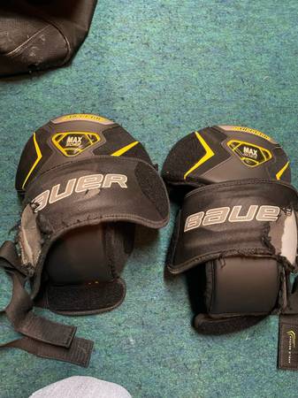 Used bauer senior goalie knee pads, outside is frayed from tape but inside and padding aee still good! $30