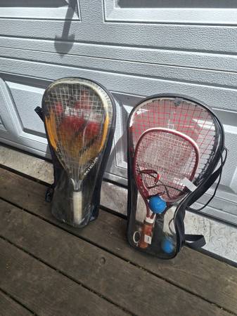 $20.00 takes everything. 4 Racquetball Racquet with carry bags Two balls and safety glasses with strap. Pick up anytime just text me the night before or early morning. Text or call me...
