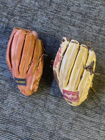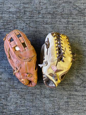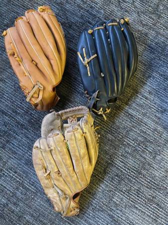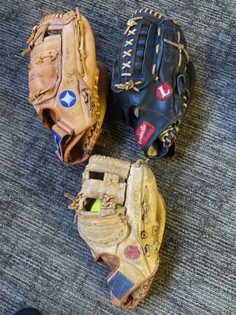 Softballs gloves 13.5" Louisville Slugger and Rawlings 12.75" others unmarked $30 Each FIRM