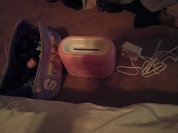 Essentail oil diffuser, pink comes with added miscellaneous essential oils for you. 45 for the whole thing.