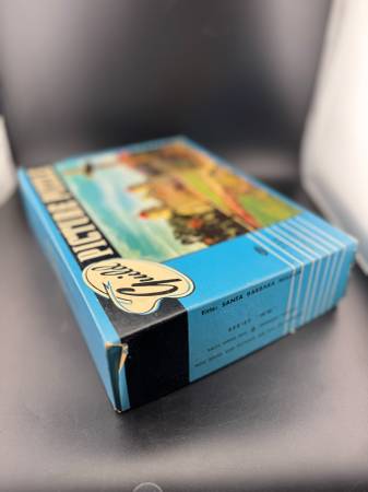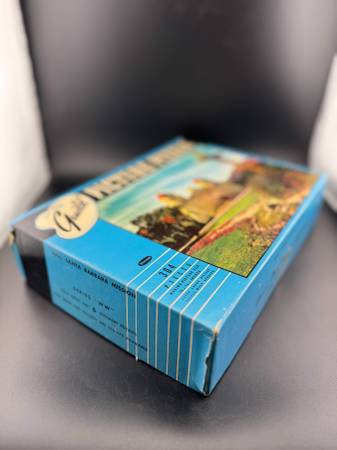 This 304-piece jigsaw puzzle offers a relaxing activity featuring vibrant scenery of a church and garden. Ideal for puzzle enthusiasts, it showcases a detailed and colorful landscape. Perfect for gift-giving or leisurely weekends, this puzzle combines fun with a charming artistic view. The sturdy cardboard pieces ensure durability and easy handling. A visually appealing project that sparks creativity and patience. Please note - Vintage puzzle pieces have been counted and noted. We have only listed those puzzles with pieces that fall into the range noted on the box. Puzzles have not been assembled to verify they're complete.