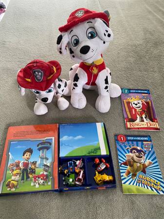Paw Patrol Lot Two Paw Patrol Dogs, one battery operated Two Books One hardcover book with mat and accessories Excellent condition Pet free smoke free home