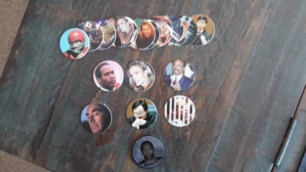 I am selling an unopened 1995 Aikman vs Young milk cap game and the complete set of 1995 U.S. President pogs (70 pogs); a set of U.S. state pogs that include U.S. government pogs (54 pogs) with a slammer; 1990 OJ pogs (18 pogs) with a guilty, not guilty, slammer; and various miscellaneous pogs such as 1993 D.C. comics pogs, 1995 goosebumps pogs, 1993 D.C. Skycaps from Skybox with a slammer, cyber kaps, etc. Thanks
