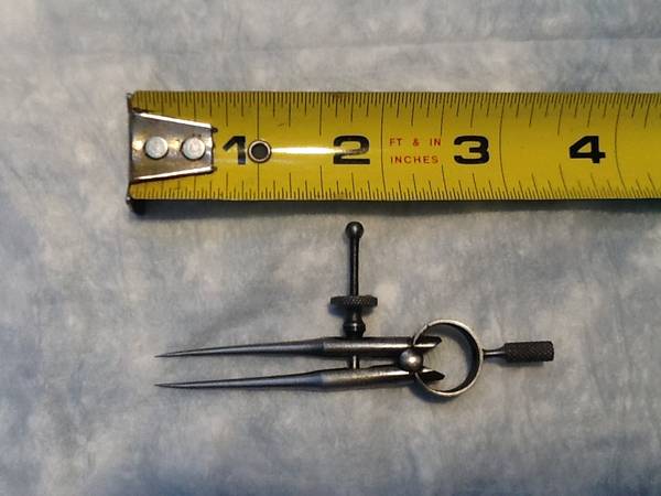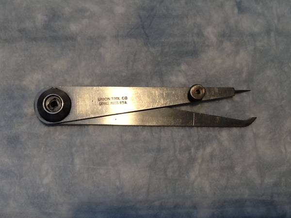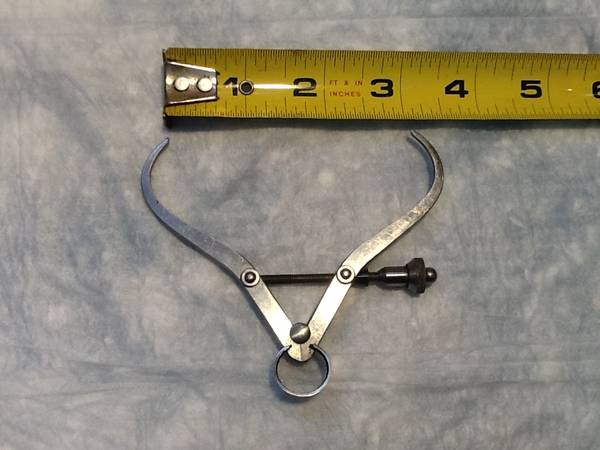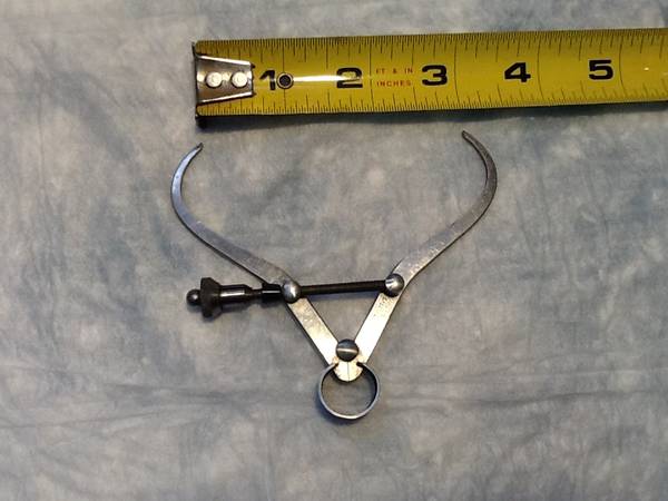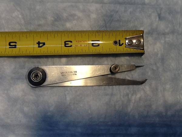 Three small vintage calipers and a divider. All from different Manufacturers. A 3 3/4" caliper made by Star Tool Works. A 3" Caliper made by Mass. Tool Co. A Hermaphrodite made by Union Tool Co. and 2" Dividers Made by the C.P. Co. All 4 for $20. Cash Only Sale. Local sale to within Monroe County NY.
