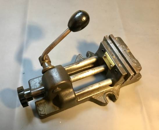 Heinrich 3SV Vise. Jaws open to 3". Features cam activated quick release design. Movable jaw slides easily to where you want it. When you move the activation arm the cam locks it in place and a little more movement applies pressure to the piece to be secured. Although this is a used vise new ones are still being produced in Racine Wisconsin. Weighs about 10 lbs. Cash only sale. I will not mail the vise but I will meet you at a mutually agreed upon location within Monroe Co., NY so you can inspect the vise thoroughly before deciding.