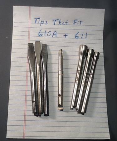 Included -Two screwdriver bits of your choice for each of the 610A, 611 and 620A. No. 29 comes with one bit (as originally sold)