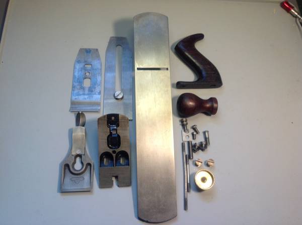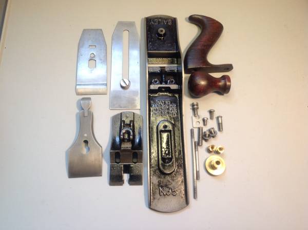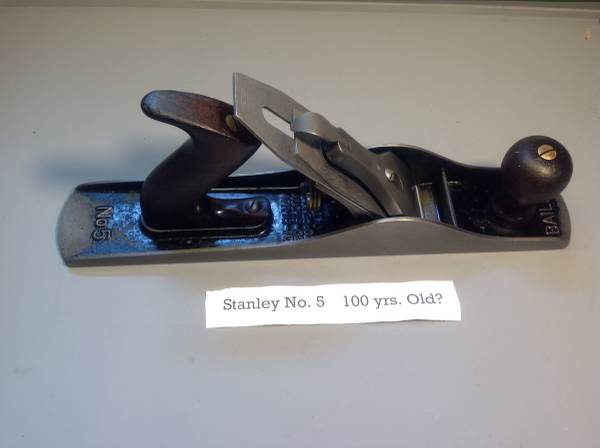 Vintage Stanley Bailey No. 5 Bench Plane. Very old. It has 3 patent Dates... Mar 25-02, Aug 19-02, & Apr 19-10. Something unique in that it has a Sweetheart Logo on the back of the Lever Cap. On the neg. side it is missing the lateral adjustment lever and there is a hairline crack in the handle (tote). See photos. Cash Only sale. Local sale. I will meet you at a mutually agreed upon time and place anywhere within Monroe Co. NY so that you can inspect the plane thoroughly before deciding.