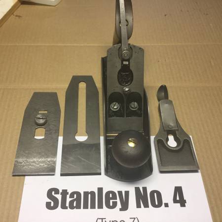 Vintage Stanley No. 4 Bench plane. More than 100 years old. There are no cracks or broken bits and I believe it is all original except for the Iron which is a "Victory" replacement iron. There is an "S" cast into the bed behind the frog and there are three pat. dates on the Lateral Adjuster. Take a look at the photos. Cash only and I will meet you anywhere in Monroe County NY so you can take a look before deciding. Thanks for looking.