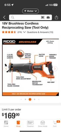 Ridgid brushless sawzall works great no battery or charger asking 70$ or make offer located in Marion