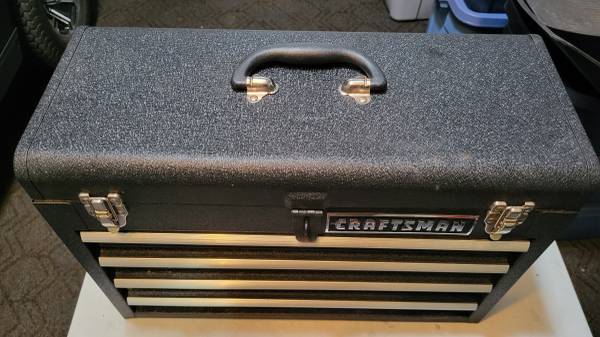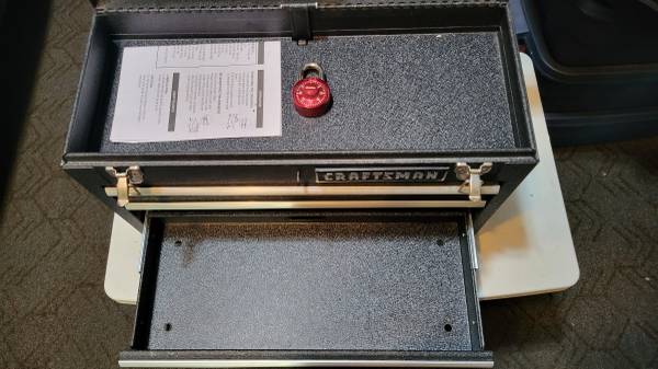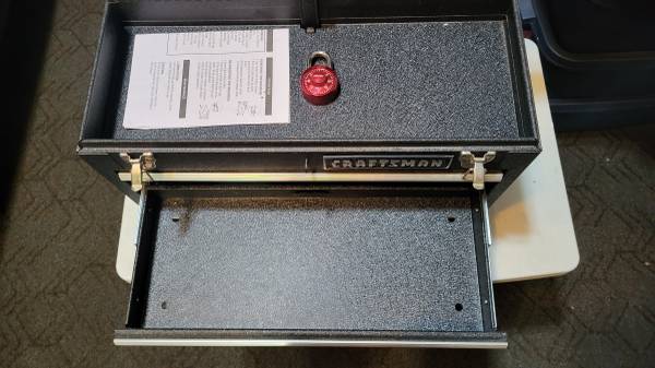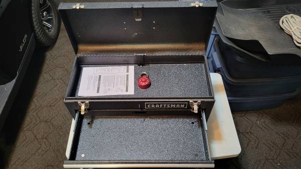 Toolbox. 21.5" long x 9"deep by 14.5" closed. Like new condition. Call . Land Line / No Texting (five, eight, five, three, nine, two, five, eight, six, five).