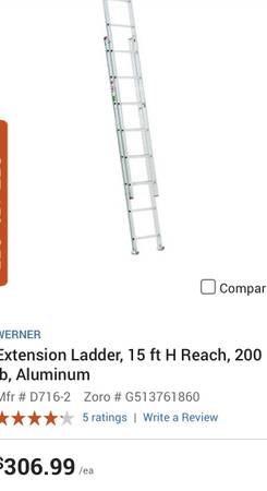 16’ Werner D 716-2 aluminum extension ladder! SEE PICS!!! RETAIL $306+ Tax!!! Selling for $89 FIRM!