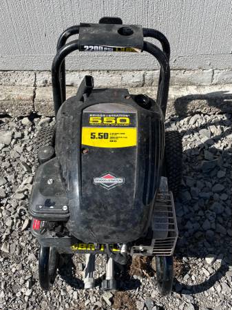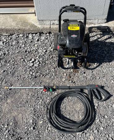 Brute gas pressure washer w/ wand and nozzle tips! Missing dipstick BRIGGS and STRATTON 550 ENGINE SERIES! 2200PSI 1.9 gallon per minute! **STARTS WITH ETHER THEN STALLS!!! Sat over winter with gas...