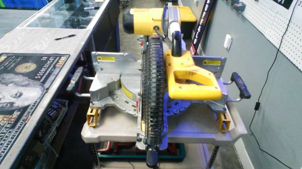 WE HAVE FOR SELL A DEWALT dws779 15 Amp Corded 12 in. Double Bevel Sliding Compound Miter Saw, MINT STOP BY HOLLYWOOD TRADERS WEST 1600 WEST RIDGE ROAD ROCHESTER NY 14615