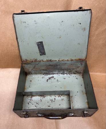 Heavy duty steel case for drills or whatever Latches function as they should Clearcoated patina finish Local text preferably