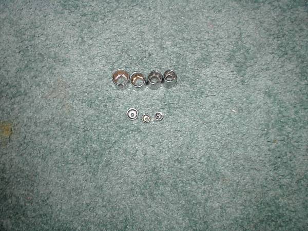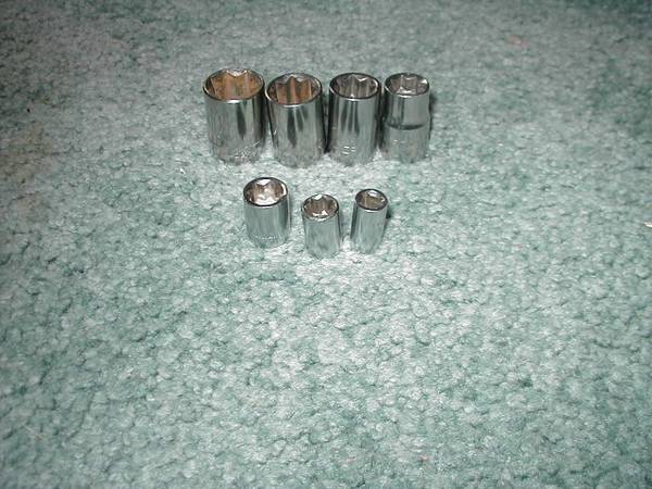 8 pt Sockets, seven. 1/4" drive sockets - 1/4", 5/16", and 3/8" (Taiwan). 1/2" drive sockets - 7/16", 1/2", 9/16", and 5/8" (Craftsman). Call Dave