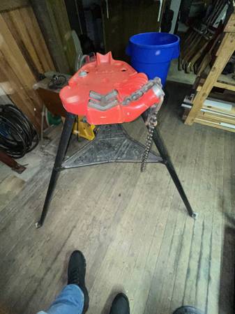 RIGID MODEL #450 PORTABLE TRISTAND CHAINVISE 1/8-5 INCH LIKE NEW LIGHTLY USED A FEW TIMES ITS CLEAN AND TIGHT ALMOST NEW 350$ FIRM CALL TXT FIVE 85 SEVEN 46 FOUR EIGHT ZERO 8