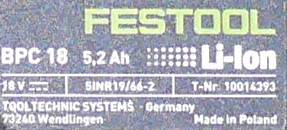 I have an Original Festool 18 volt 5.2 Amp-Hour lithium ion battery shown in in the photos.