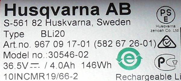 Note: Husqvarna is a very safe battery brand and will allow a pack to charge when the pack