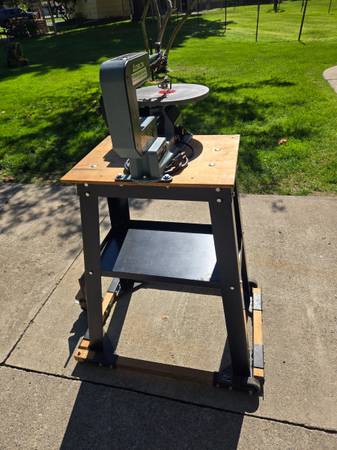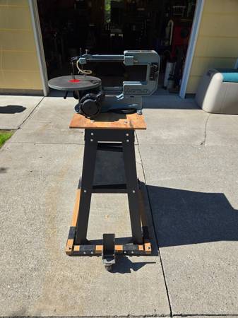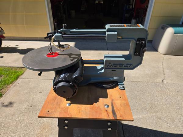 Up for your consideration is this very nice Delta scroll saw. Super smooth running with constant blade tension. Comes with stand, roller base and blades.
