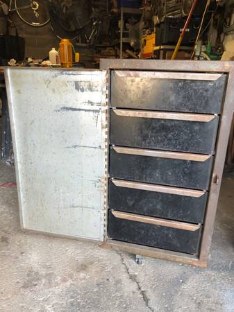 Heavy duty dolly/cart Was made to fit a Kennedy tool box plus another box. Has 5” heavy duty castors (one wheels in middle is losing its rubber outer cover) The castors alone are $20 each Inside...