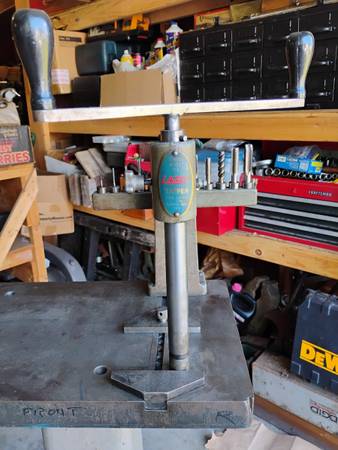 This is a Lassy hand tapper that was built in Plainville, Connecticut. They don't build them like this anymore. It is a very solid machine, has all of the original arbors, and is in excellent working condition. I am asking $225. Cash only. Questions, call or text 585 - four five five - 0121. Yes, it is available. Please note that the tapper includes what is shown in the pictures, but the stand underneath it is not included in the sale. Thanks for looking.