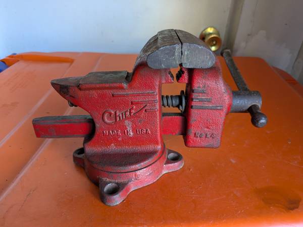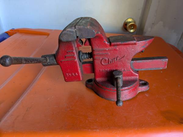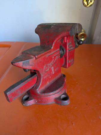 swivel base utility bench vise with 4" wide jaws, pipe jaws, anvil